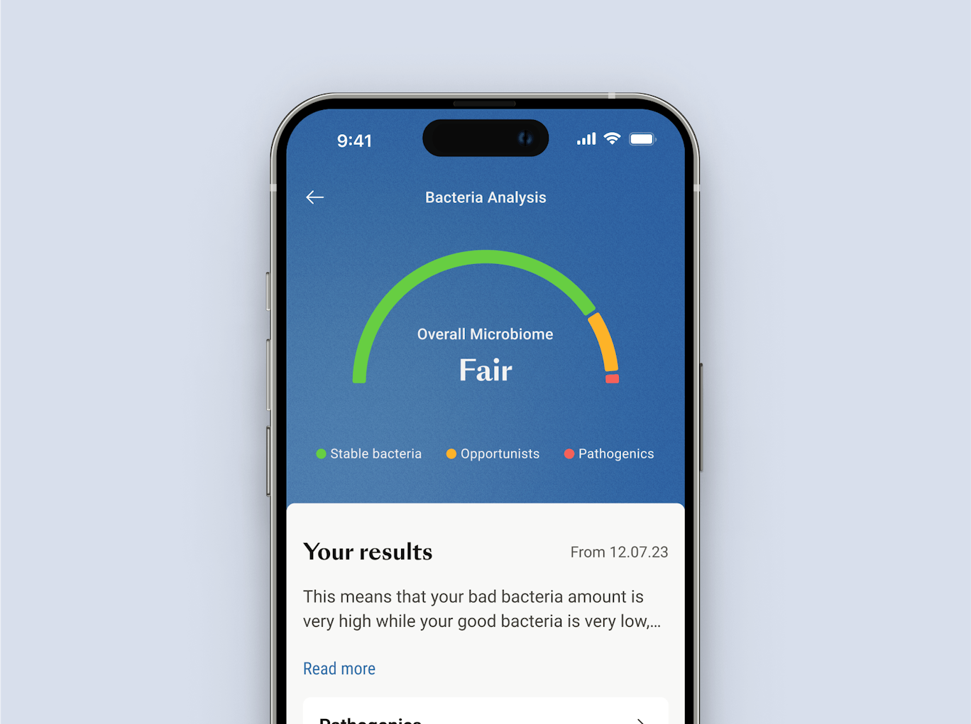 Dans notre appli, tu recevras un rapport complet contenant tes données personnelles, les sites exacts de prélèvement et une liste des bactéries identifiées.Sur la base de ces résultats d'analyse, tu recevras des conseils personnalisés pour ton hygiène bucco-dentaire et ton mode de vie, ainsi que des recommandations de produits et de traitements adaptés. Cela te permettra d'améliorer tes soins bucco-dentaires et d'accroître ton bien-être général à long terme.